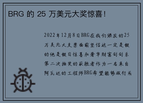 BRG 的 25 万美元大奖惊喜! 2025-03-06 13:33:46 澳洲幸运十官方开奖2022年12月8日BRG在我们颁发的25万美元大支票面前,坚信这一定是假的,他是《假日惊喜》和《奢华财富》刮刮乐第二次抽奖的获胜者。作为一名来自阿瓦达的工程师,BRG希望能够旅行,或许这次真的可以退休。他表示,他可能会给孩子们5美元。恭喜BRG!